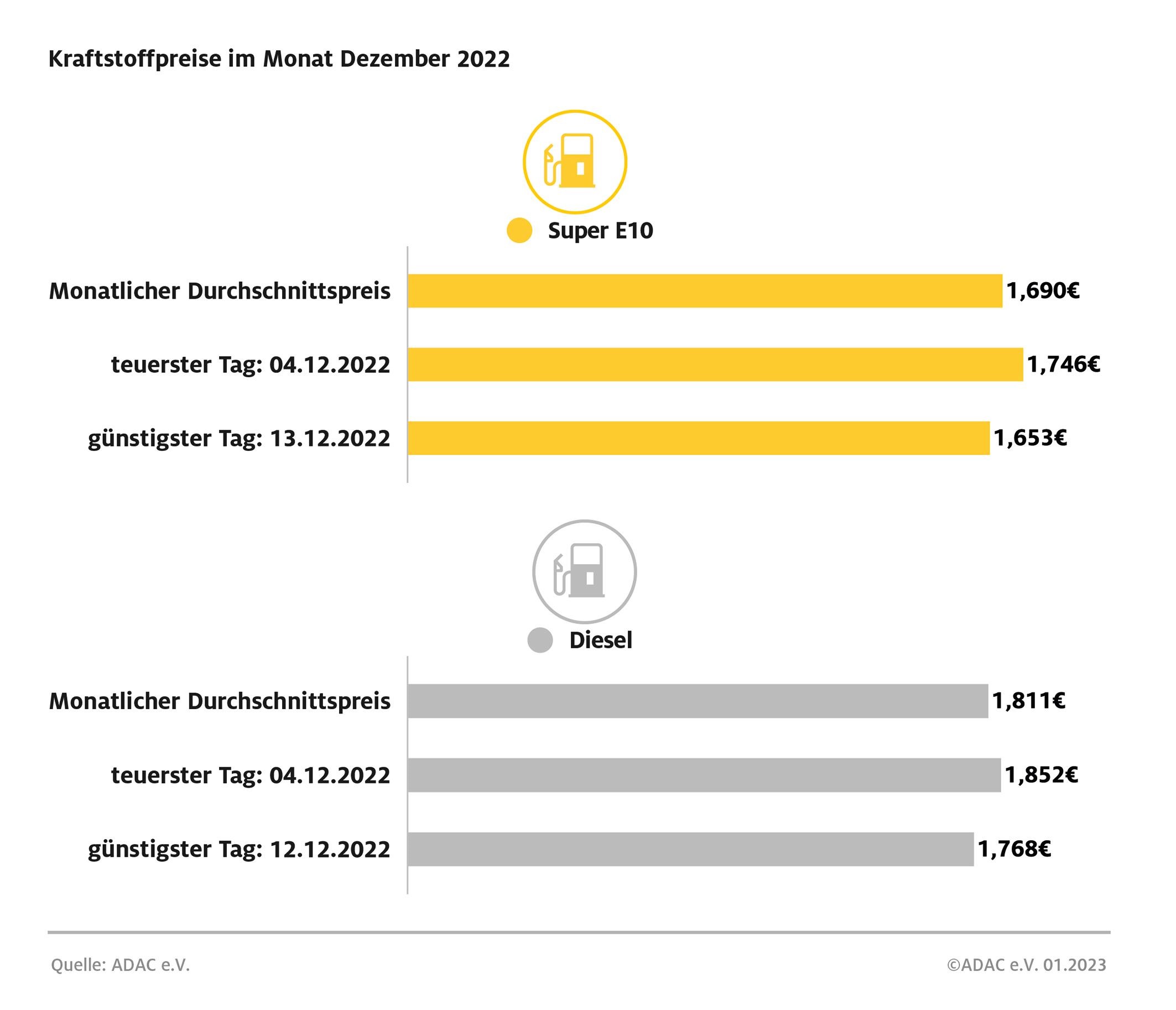 Spritpreise im Monatsdurchschnitt Dezember 2022