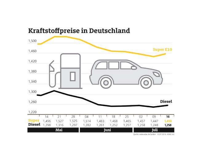 München (ots) Nach einem kurzen Preishoch in der letzten Woche sind die Benzin- und Dieselpreise wieder gefallen. Dieser Rückgang an den Tankstellen ergab sich vor dem Hintergrund der auf rund 63 Dollar je Barrel und damit deutlich gesunkenen Rohölnotierungen. Laut aktueller Auswertung des ADAC kostet ein Liter Super E10 im bundesweiten Durchschnitt 1,442 Euro, das sind…