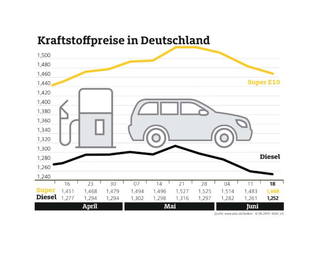 München (ots) Autofahrer müssen an den Tankstellen erneut weniger bezahlen als in der Vorwoche. Laut aktueller Auswertung des ADAC verbilligte sich Super E10 im Bundesdurchschnitt um 1,5 Cent auf 1,468 Euro je Liter, der Preis für einen Liter Diesel sank um 0,9 Cent auf 1,252 Euro. Die Durchschnittspreise sind damit die vierte Woche in Folge gesunken.…