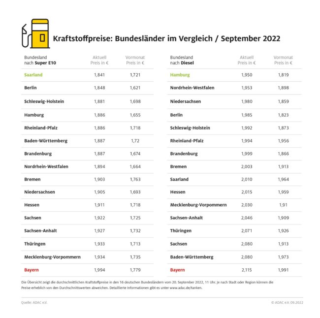 ADAC – Kraftstoffpreise: Bayern mit Abstand am höchsten Saarland bei Benzin am günstigsten, Hamburg bei Diesel