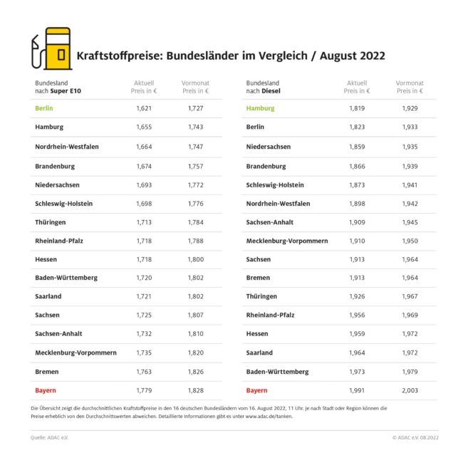 München (ots)   Die Preisunterschiede beim Tanken zwischen den deutschen Bundesländern werden immer größer. Die Leidtragenden sind derzeit vor allem die Autofahrer in Bayern, wo deutschlandweit die mit Abstand höchsten Kraftstoffpreise zu bezahlen sind. Als Gewinner dürfen sich momentan trotz allgemein hoher Preise die Verbraucher in Berlin und Hamburg fühlen – hier tankt man zurzeit deutlich…