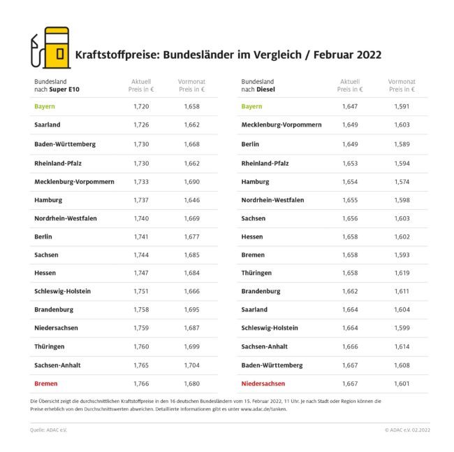 Hohe Spritpreise: Nur geringfügige Unterschiede zwischen den Bundesländern – Bayern „günstigstes“ Bundesland bei beiden Kraftstoffen