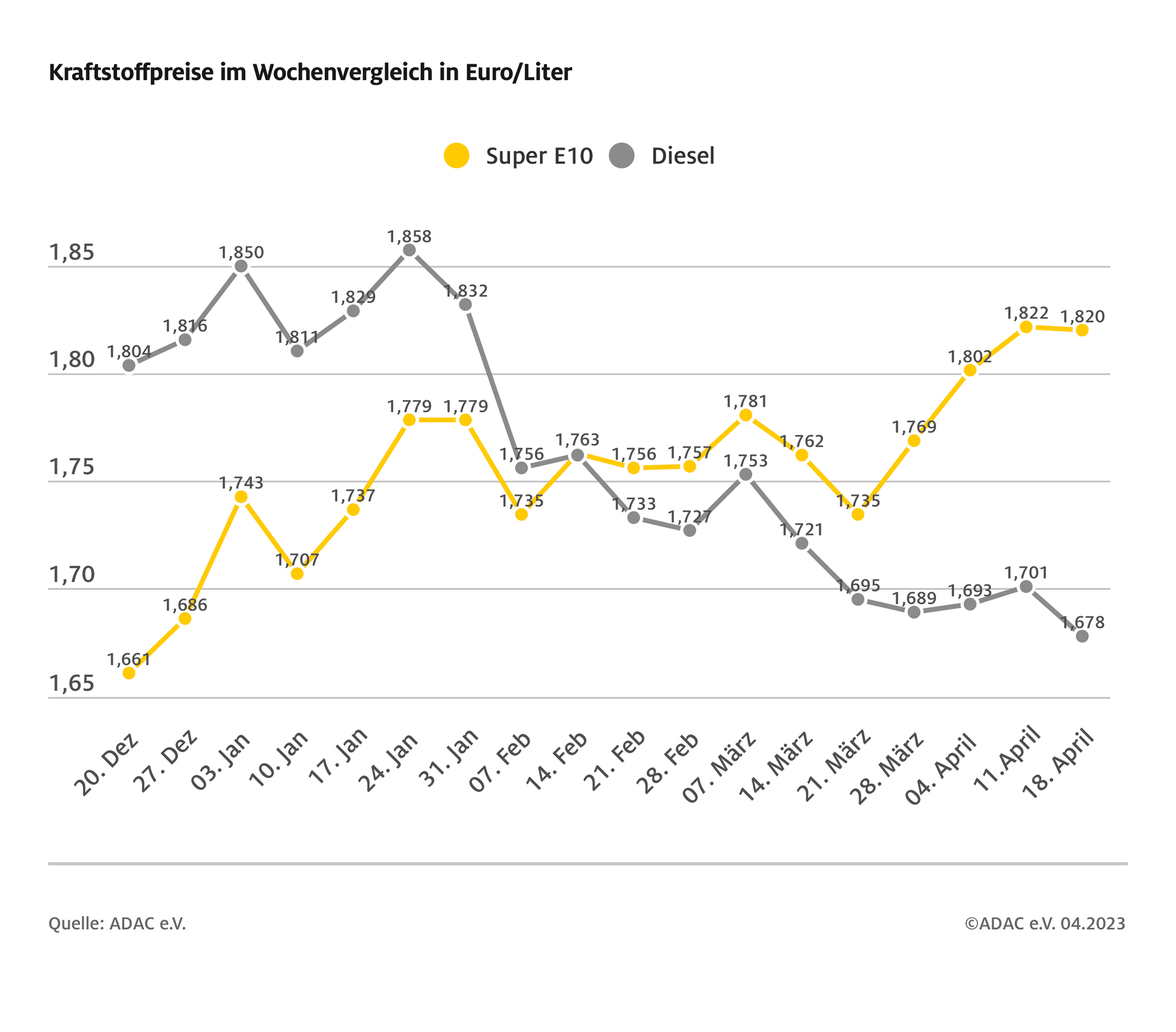 Aktuelle ADAC Auswertung der Kraftstoffpreise in Deutschland