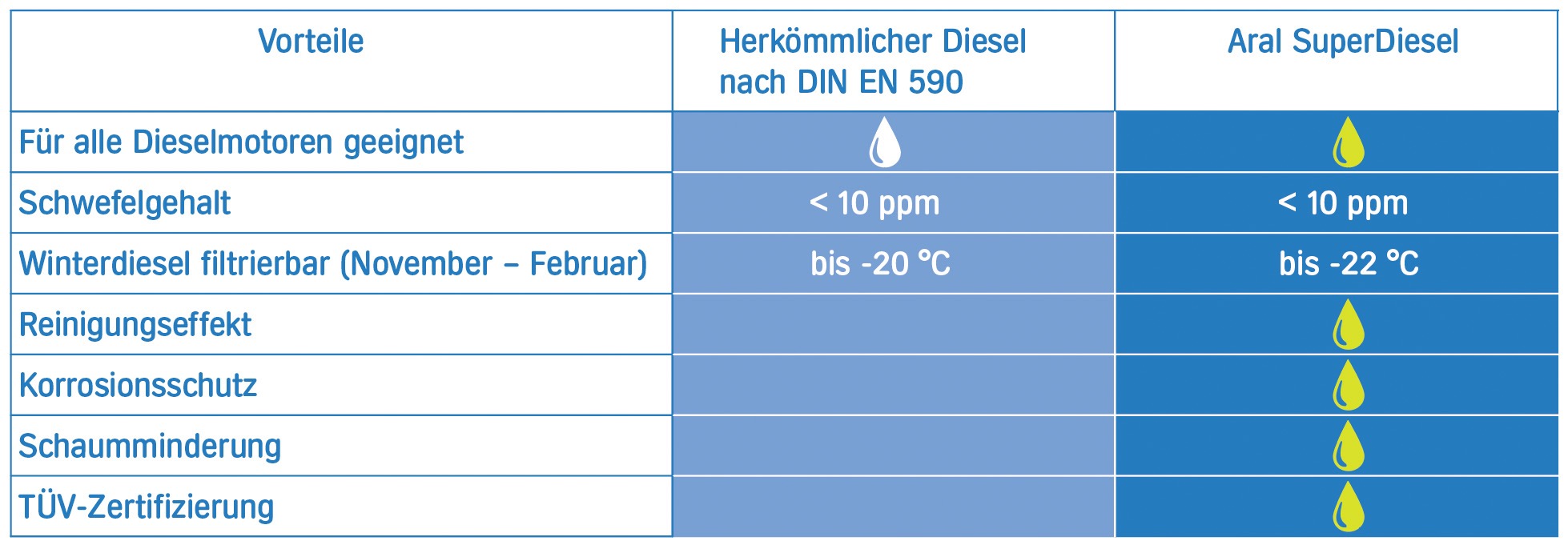 So entfernt auch Aral SuperDiesel ab der ersten Anwendung den Schmutz im Motor und verhindert bei regelmäßiger Verwendung,