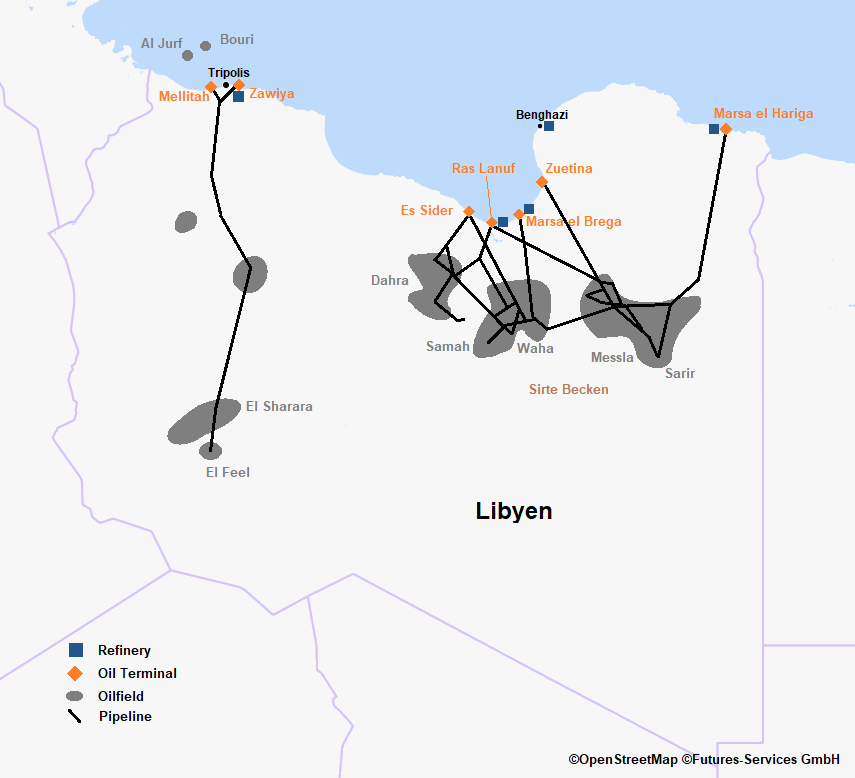 Libyen besitzt die größten Ölvorkommen innerhalb Afrikas, konnte diesen Reichtum in den letzten Jahren aber immer weniger nutzen. Seit dem Sturz des Machthabers Muammar Gaddafi 2011 versank das Land in einem heftigen Bürgerkrieg. Seit Januar waren die Ölanlagen des Landes blockiert worden, so dass die Ölförderung von 1,7 Millionen Barrel (à 159 Liter) täglich auf nur noch etwa 90.000 Barrel täglich sank.