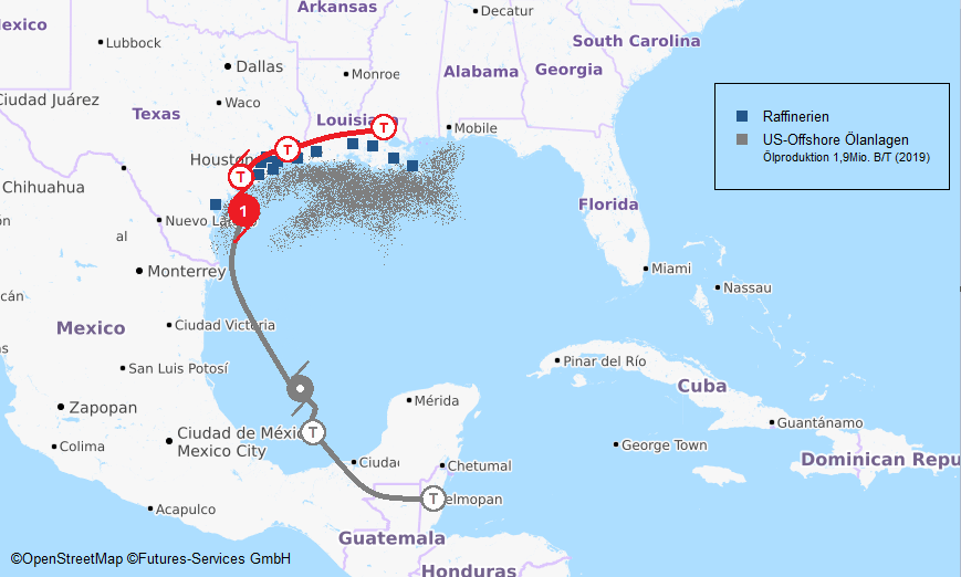 Zwar wurden in den letzten Tagen deutliche Fortschritte bei der Wiederinbetriebnahme der Plattformen gemacht, doch erste Ölfirmen haben gestern wieder mit der Evakuierung ihrer Anlagen begonnen. Diesmal betrifft es den westlichen Teil der Offshore-Bereiche, denn Hurrikan Nicholas zieht aktuell an der texanischen Küste entlang und wird nun also auch die Ölanlange im texanischen Küstengebiet betreffen.