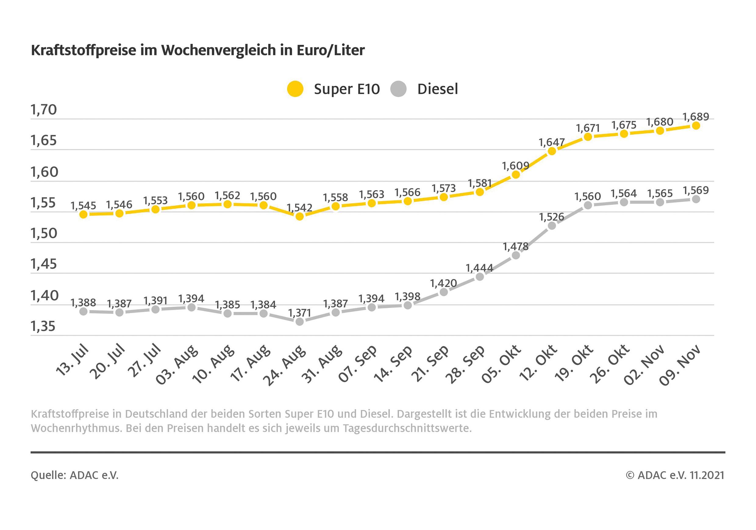 München (ots) – Tanken wird nach wie vor teurer. Das ermittelt der ADAC in seinem Wochenvergleich der Spritpreise. Ein Liter Super E10 kostet demnach im Bundesschnitt 1,689 Euro. Das entspricht einem Anstieg von 0,9 Cent gegenüber vergangener Woche. Beim Diesel ist ebenfalls ein Preisanstieg zu verzeichnen: 1,569 Euro kostet ein Liter im bundesweiten Mittel und somit 0,4 Cent mehr als in der Vorwoche.