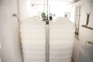 Wenn der Inhalt „grün“ wird: Der Öltank wird zum regenerativen Energiespeicher. Dafür soll der Einsatz treibhausgasreduzierter Brennstoffe sorgen. Biomassebasierte Produkte ohne Nutzungskonkurrenz zu Agrarflächen oder Nahrungsmitteln und synthetische Brennstoffe könnten zukünftig in den Heizöltanks lagern. Foto: IWO