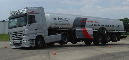 Ein Zug mit flüssiger Ladung hat ein anderes Fahrverhalten als ein normaler Lkw. Durch plötzliche Lenkmanöver oder durch Bremsen wird die Flüssigkeit im Tankfahrzeug in Schwingung versetzt. Dadurch verlagert sich der Fahrzeugschwerpunkt. Die Kippgrenze ist für den Fahrer nicht fühlbar.