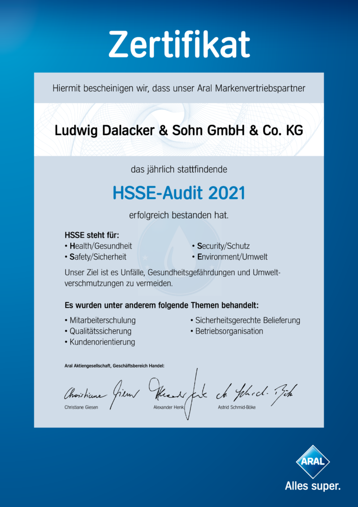 Das HSSE Audit wird jährlich durch den TÜV Rheinland, als neutraler Partner, durchgeführt.